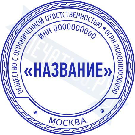 - Печать ООО стандартная на металлической оснастке Леон-магнит/кожа D42, 42мм по цене 2797 рублей и еще 69 видов стандартных печатей