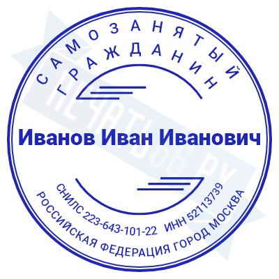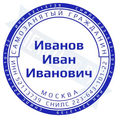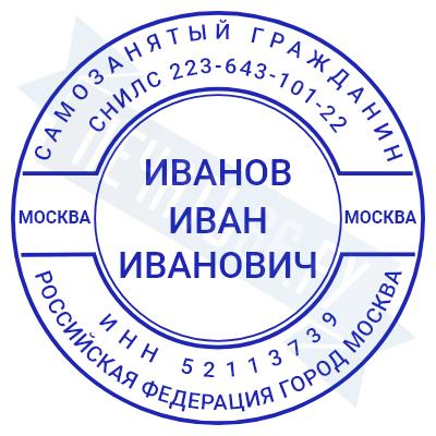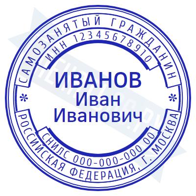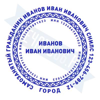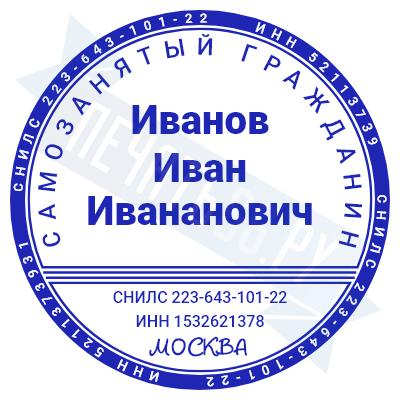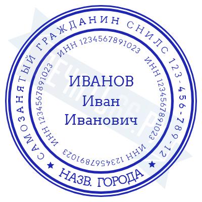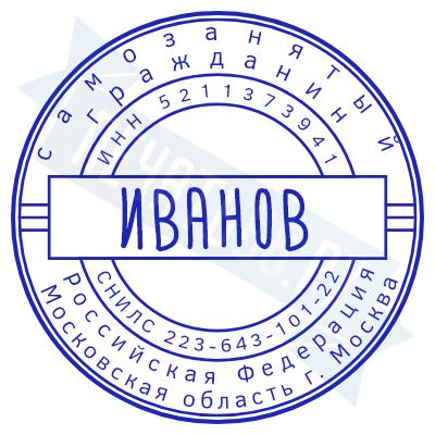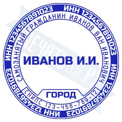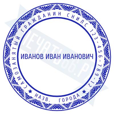 - Печать самозанятого на ручной оснастке Таблетка ЕКП42, 42мм по цене 898 рублей и еще 67 видов печатей для самозанятых